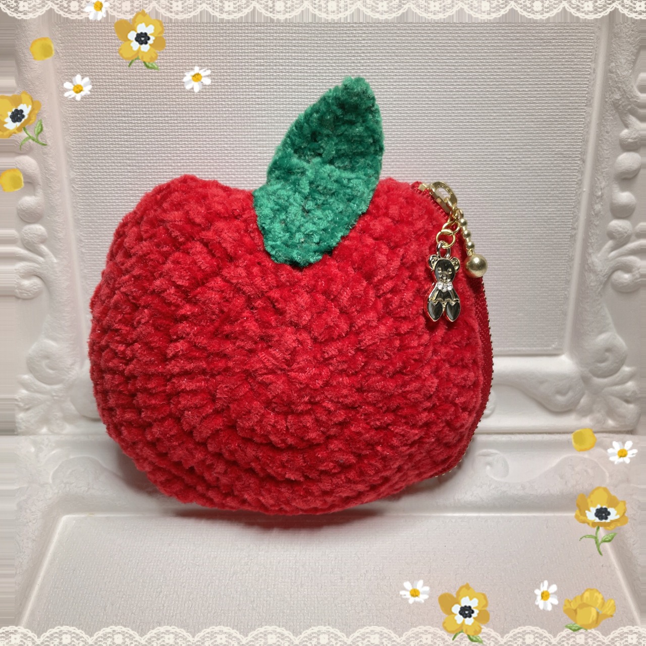 赤くて丸い可愛いりんごのポーチが出来ました。