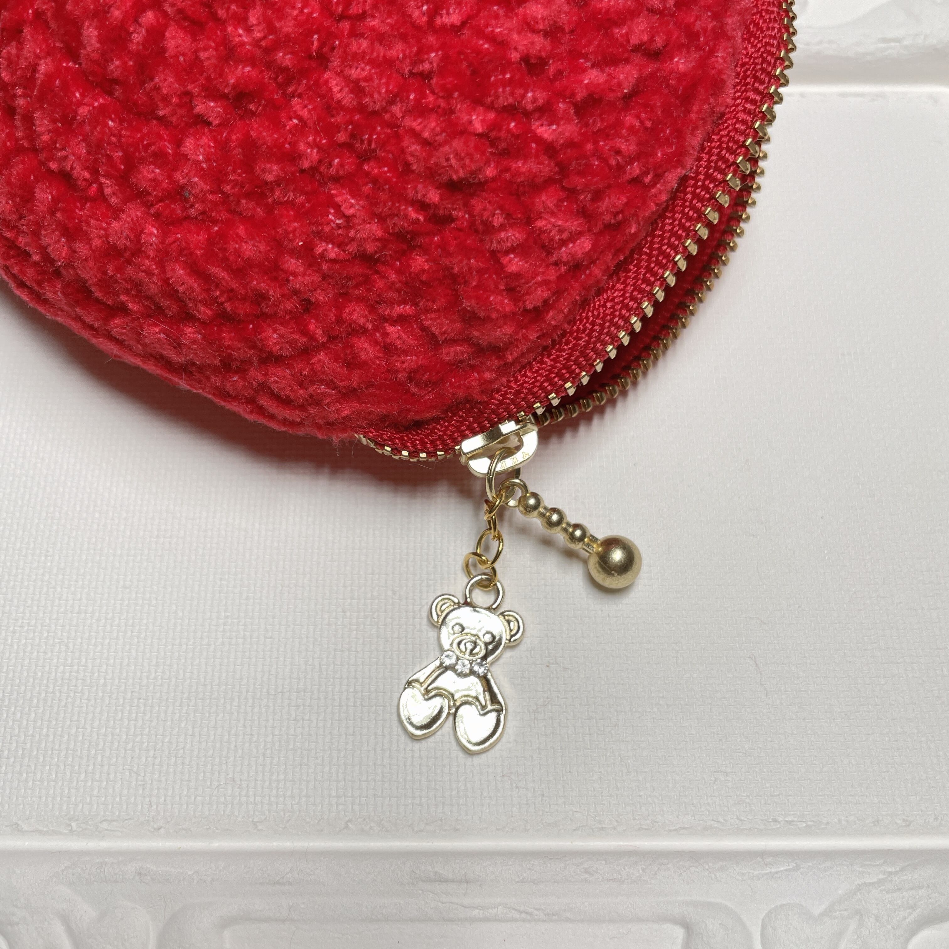 ファスナーにはくまさんのチャームを付けました。コスメやお薬、キャンディー等お好きなものを入れてみてくださいね。