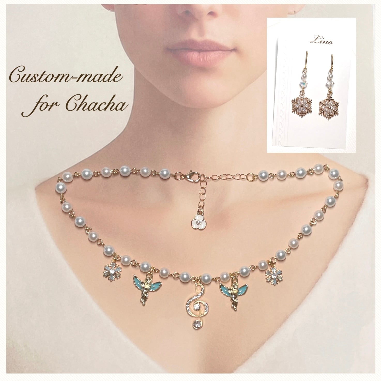 【チャチャ様専用オーダーメイド】雪と天使が奏でるメロディのチョーカー・煌めく雪のピアス