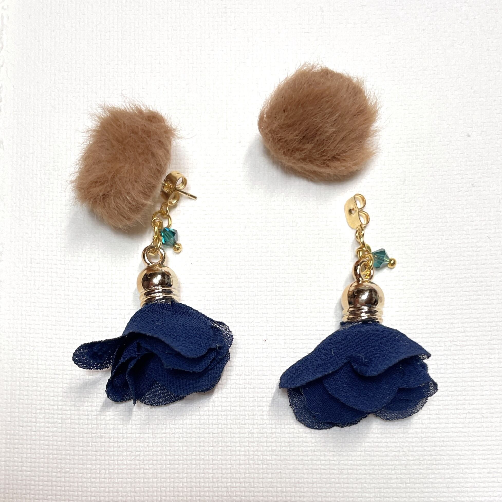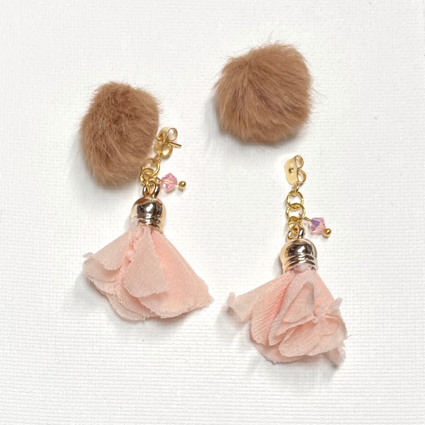 ふんわりファーとフリンジのピアス